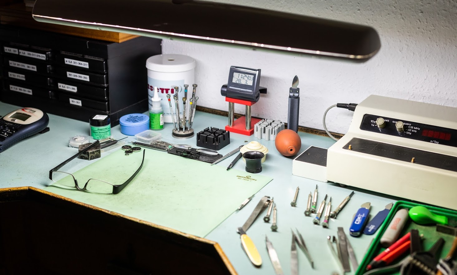 Dem modernen Ladenlokal ist die hauseigene Werkstatt angegliedert. Servicearbeiten an Klein- und Großuhren werden bei uns fachmännisch durchgeführt.